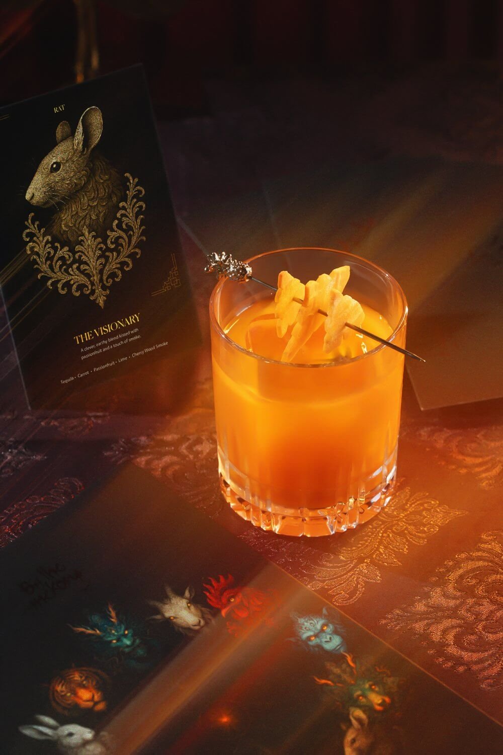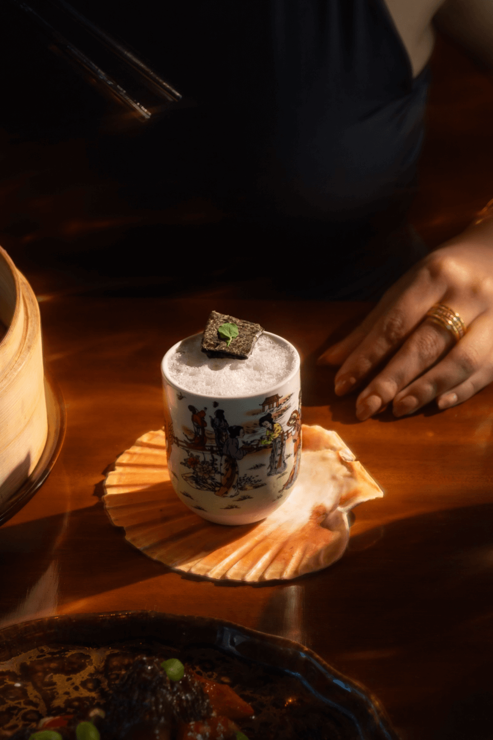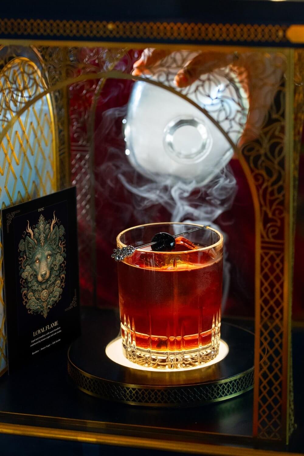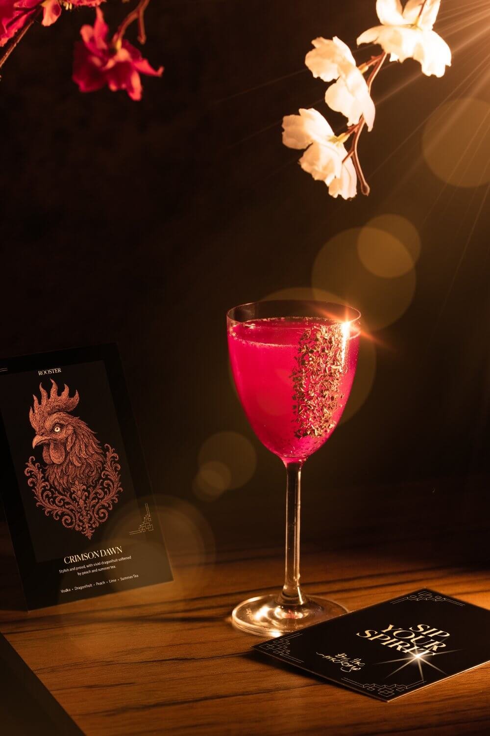 Gin, oriental lime, cranberry, star anise, freshly squeezed lime juice, fresh fruits finished with flamed Cointreau