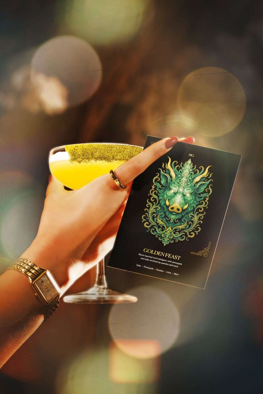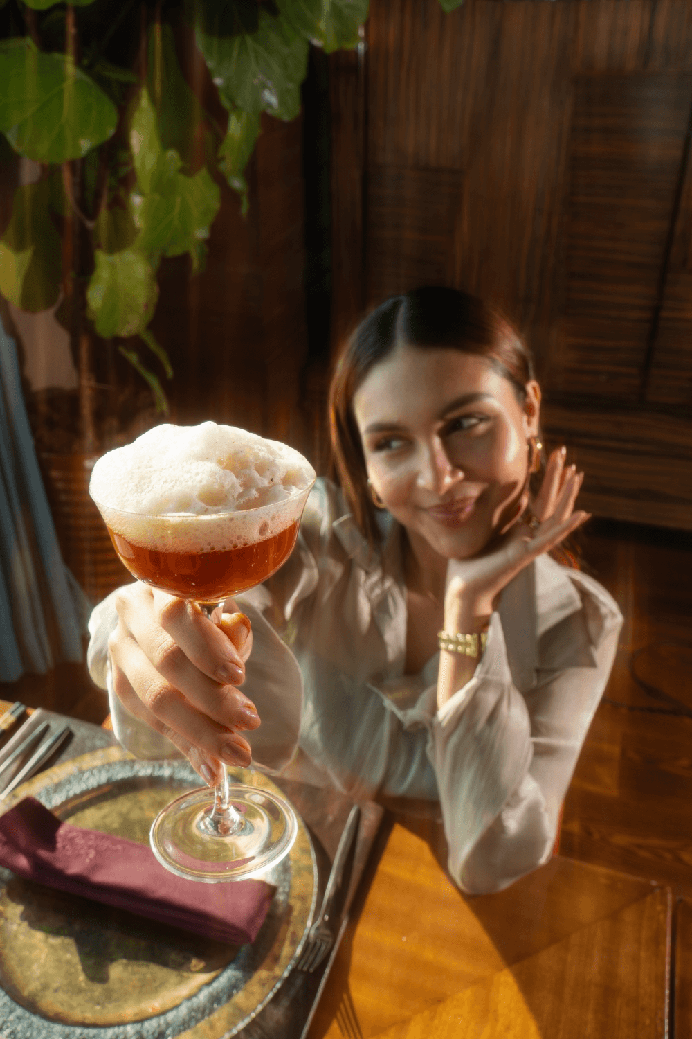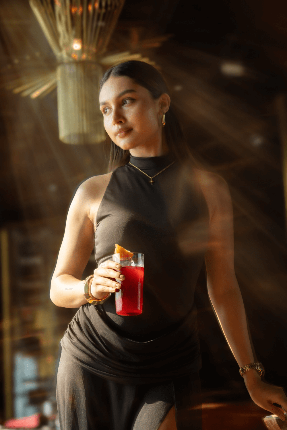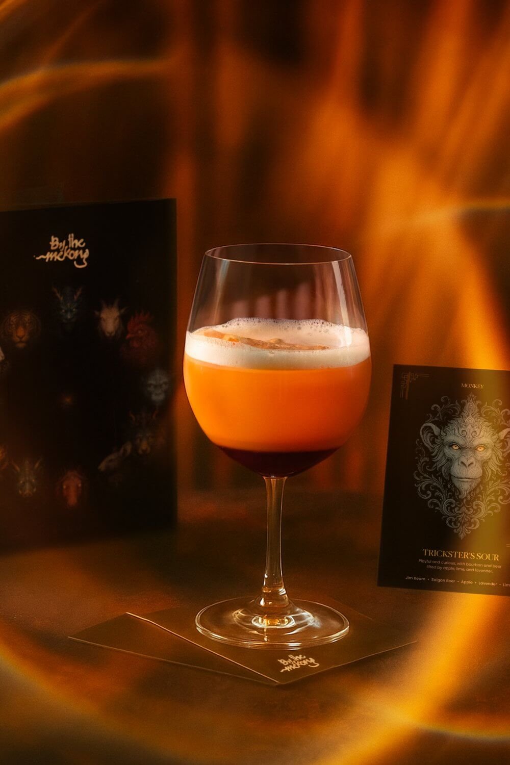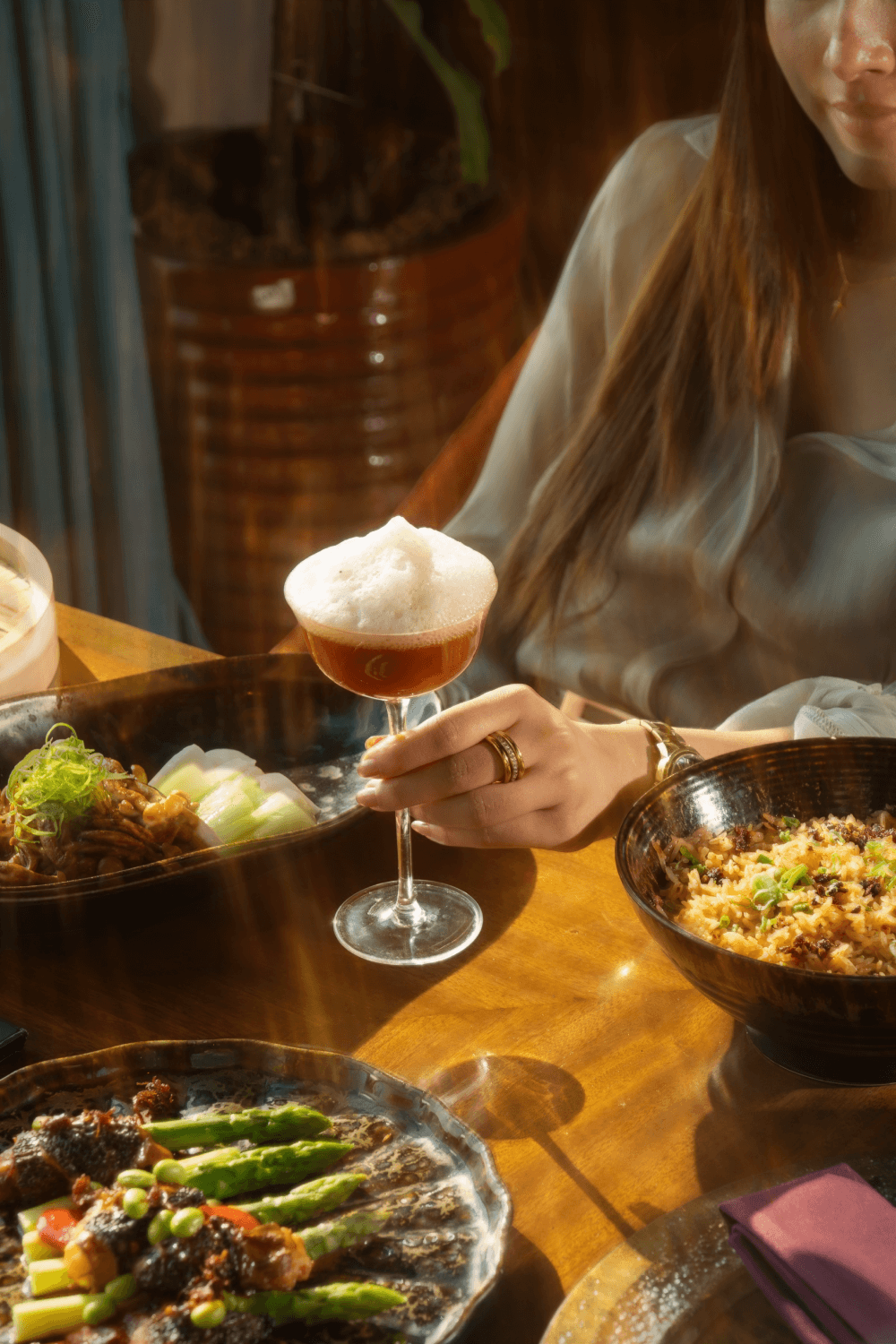 Gin, oriental lime, cranberry, star anise, freshly squeezed lime juice, fresh fruits finished with flamed Cointreau
